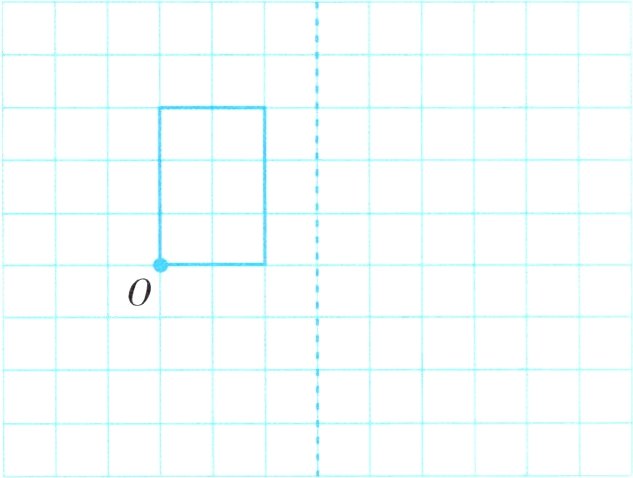 (2) 再以虚线为对称轴,画出原图形的对称图形(图形用阴影表示)。