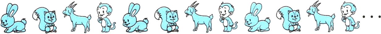 6. 下面的图形是按照一定的顺序排列的,其中第13个图形是( ),第20个图形是( )。