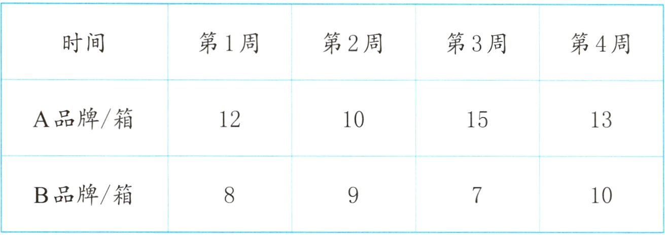 (3) 两种品牌牛奶的销售箱数相差最大的是第( )周。
