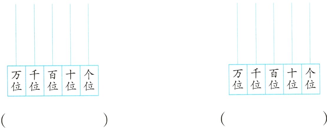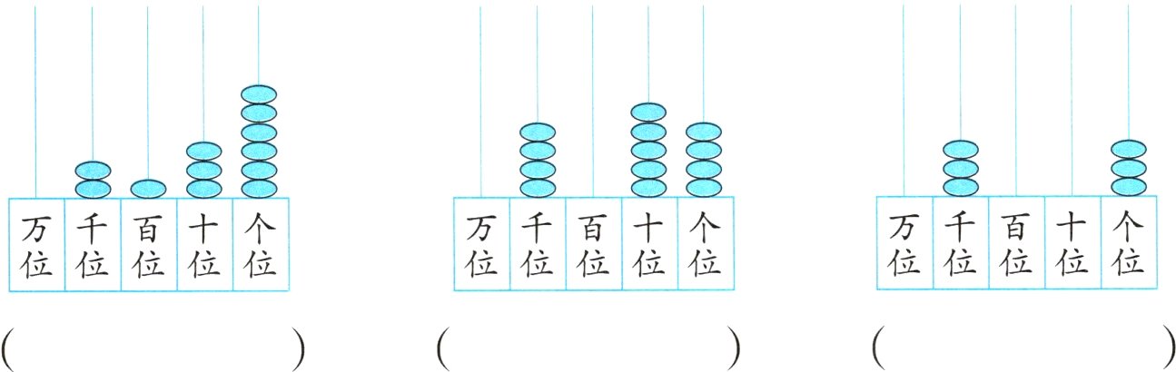 4. 在计数器上画2颗珠子,表示一个只读一个零的四位数,再写一写。