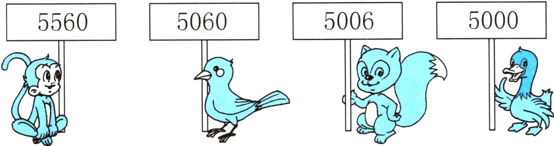3. 圈出下列各数中只读一个零的数。