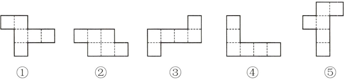 2. 下面的图形沿虚线折叠后能围成正方体的有( )。
