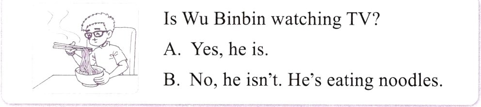 ( )No, he isn't. He's eating.