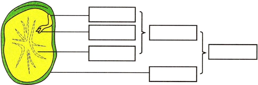 6. 观察蚕豆的内部结构,并在方框内填上相应结构的名称。