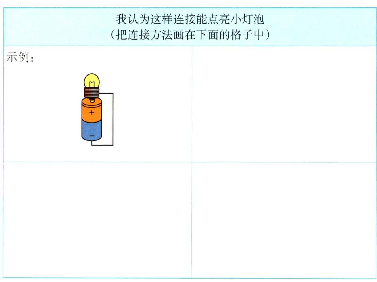 2. 尝试用导线、一节干电池点亮小灯泡。