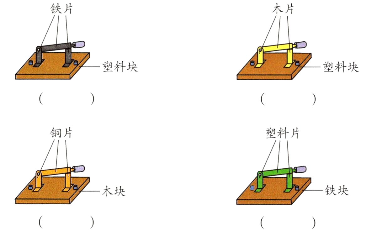 1. 下列装置中,哪些能做开关?请在下面的括号里画“√”。