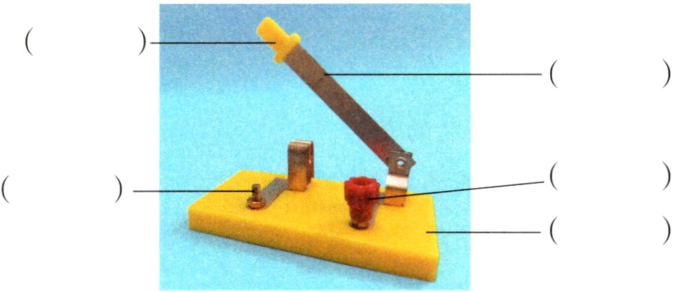 1. 观察小开关的结构,标出哪些是导体,哪些是绝缘体。