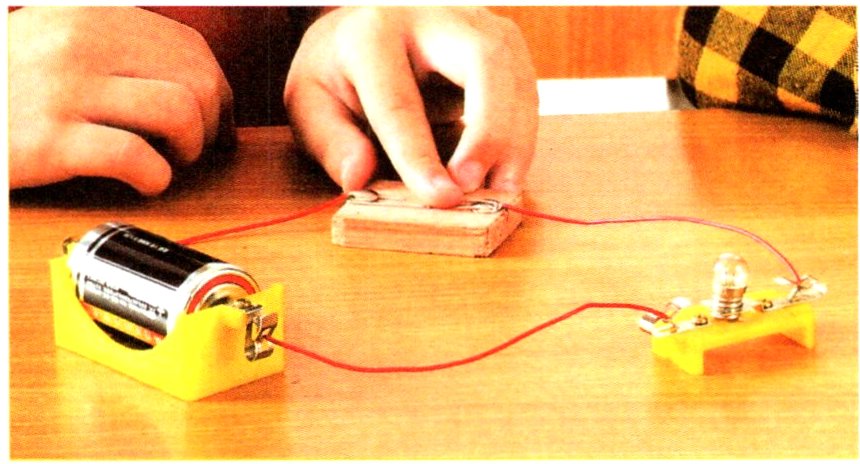 16. 科学课上,小林连接了一个简单的电路(如下图),但是小灯泡没有亮。小林认为一定是小灯泡坏了。