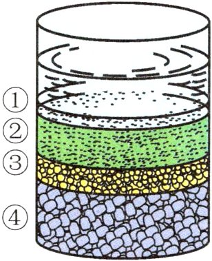 3. 把土壤倒入水中,搅拌后静置,会看到右图所示的分层现象,请在括号中填入正确的序号。
