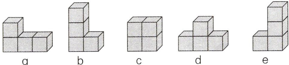 2. 观察下面用四个正方体搭成的图形,并填一填。