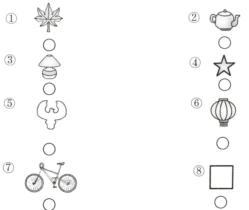 2. 下面哪些图形是轴对称图形?是轴对称图形的在〇里画“√”。