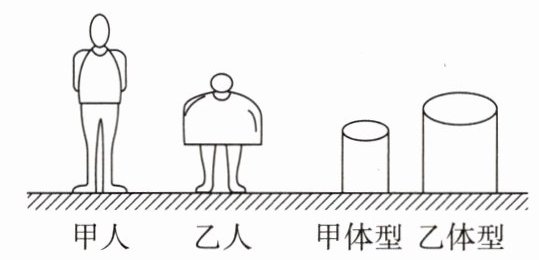 12. 科学思维 模型建构 体重指数 BMI 是衡量人体胖瘦程度的一个指标,它是把人体看成一个圆柱体模型,指标数据反映了单位高度圆柱体的截面积情况,数据越大表明截面积越大,从而直观地反映体型状况(如图所示),将质量 $m$(kg)、身高 $h$(m)按照下列哪种方式计算适合作为体重指数 ( )