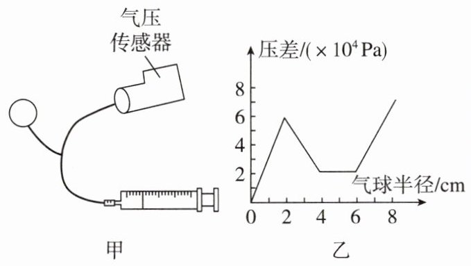 (5)将探究实验所得的数据以气球半径为横坐标,内外压强差为纵坐标绘制得到如图乙图像。