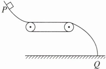 16. 新考法 装置新 如图所示,物块从光滑曲面上的 P 点自由滑下,通过粗糙的静止水平传送带后落到地面上的 Q 点。若传送带的皮带轮顺时针匀速转动,使传送带随之运动,物块仍从 P 点自由滑下,则物块落到 ( )
