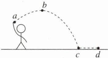 10. [2024·枣庄] 在体育测试中,小明同学掷实心球的场景如图所示,图中 a 点是球刚离开手的位置,球从 a 点上升到最高点 b 后下落到地面 c 点,然后滚动到 d 点停止。下列说法正确的是 ( )