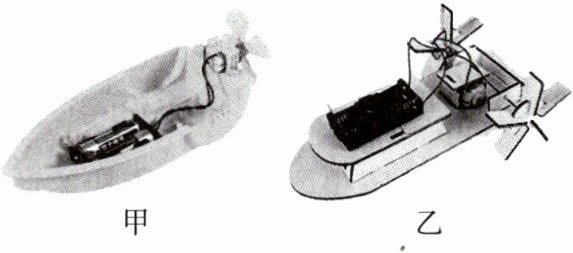 (4) 评估:上面小船动力系统存在的问题是______________________(写出一条即可)。右面两个是利用电动机作为动力系统,推动船前进的施力物体与上面小船相同的是______船,施力物体都是______。