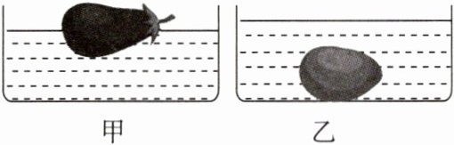 12. [2024·佛山期中] 小明帮妈妈洗菜时发现,放在盆中的茄子浮在水面如图甲所示,而土豆沉在盆底如图乙所示,他用所学的物理知识对此现象作出一些分析,其中正确的是 ( )