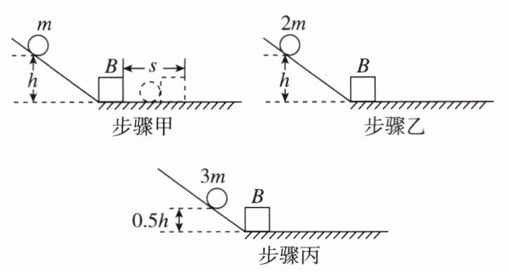 (4)通过比较步骤甲和步骤________(填“乙”或“丙”)可以判断动能大小与物体质量的关系。