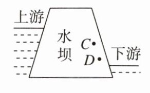 7. 利用水流推动水轮机转动,水轮机就可以带动发电机,将水能转化为电能。如图所示的水坝,水轮机安装在________(填“C”或“D”)位置较为合理。请你分析一下建造大型水力发电站的地方应该具备的条件: