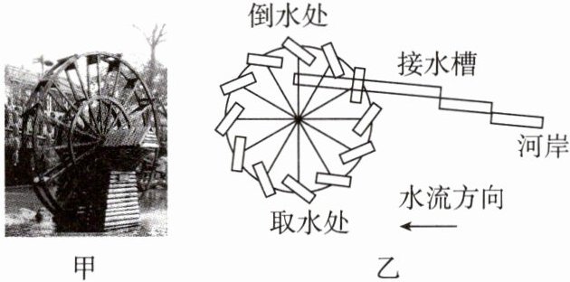 2. 筒车做功:如图乙所示,若接水槽离取水处高$4\ m$,水轮上有12个取水筒,一个取水筒每次可取水$5\ kg$,该筒车旋转一周对水所做的功为________$J$。(接水槽离倒水处的高度忽略不计,$g$取$10\ N/kg$)