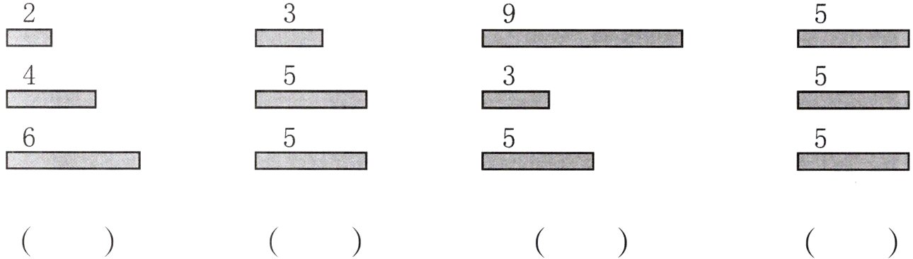 2. 下面三根小棒能围成一个三角形吗?能的画“√”。(单位:厘米)
