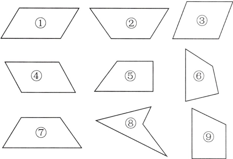 2. 下面的图形中,是平行四边形的有( ),是梯形的有( )。