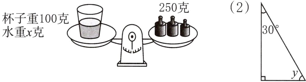 (1) 杯子重100克,水重x克,