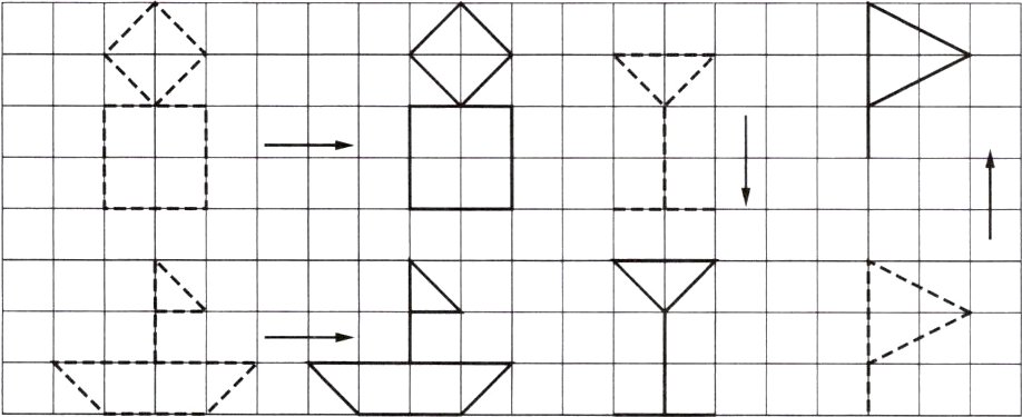 2. 按要求移一移,画一画。平移后的图形像什么?