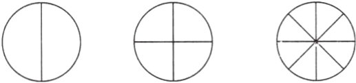 7. 有三个大小相同但口味不同的蛋糕,平均分成若干份。奇思想三种口味都吃到,且正好吃一整个,他应该怎么拿?在图中涂一涂。