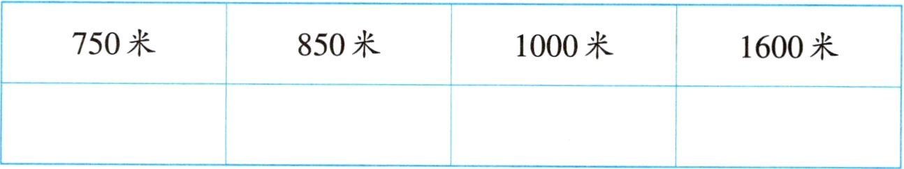 小兵家可能离学校多少米?在表格中画“△”。小明家可能离学校多少米?在表格中画“○”。