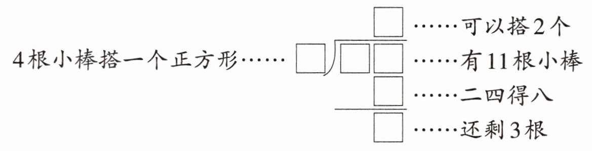 1. 用11根小棒搭 ,可以搭几个?还剩几根?