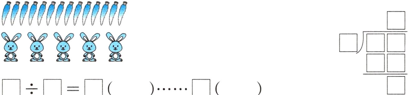 2. 平均每只小兔分到( )根胡萝卜,还剩( )根。