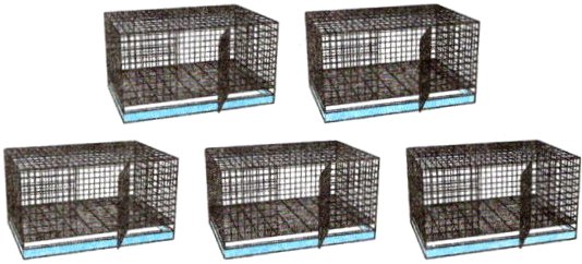 2. 有48只兔子,住在下面的笼子里,平均每个笼子住几只兔子?还剩几只?