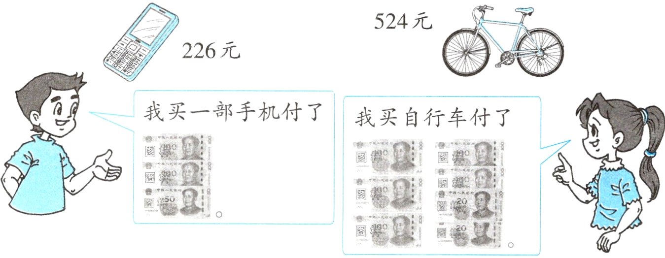 3. 算一算,他们分别要找回多少元钱?请列式计算并验算。