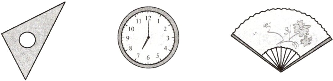 1. 在下列图形中找出一个角,用自己喜欢的颜色描一描。