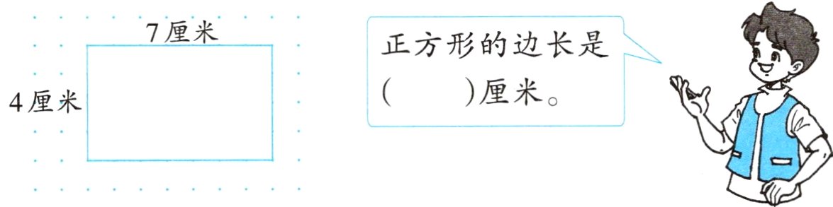 8. 用一张长7厘米、宽4厘米的长方形纸,剪一个最大的正方形,正方形的边长是几厘米?画一画,填一填。
