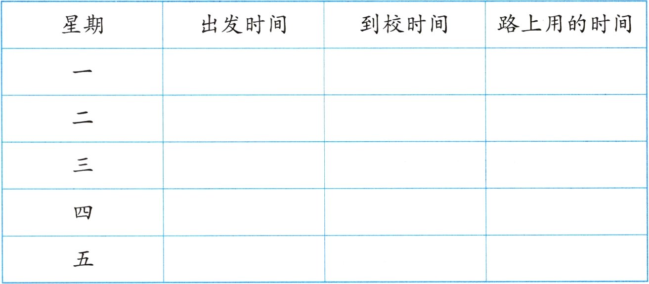 我们来做一张自己一周的上学时间记录表。