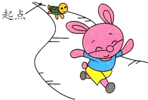 1. 如右图,乌龟和兔子从相同的起点同时出发,( )跑得更快。