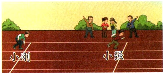 3. 如右图,小强和小刚同时起跑,不久后小刚追上了小强。他们谁跑得更快?( )。