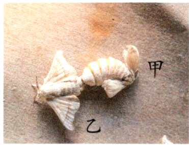 6. 右图中,( )是雌蛾,( )是雄蛾。