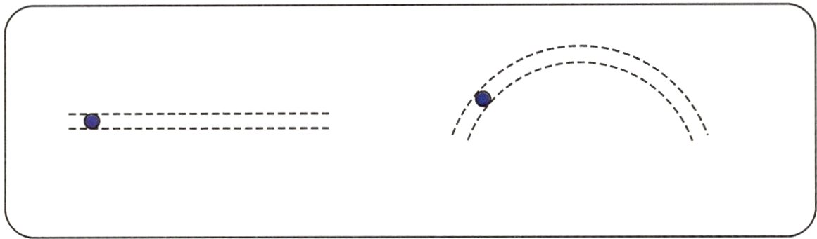 2. 用线条和箭头,画一画两种轨道中小球的运动路线。