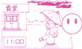 It's 11:00. It's time for lunch. Oh, it's rainy outside.