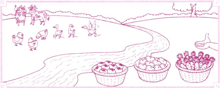 and green beans. There are many animals, too.