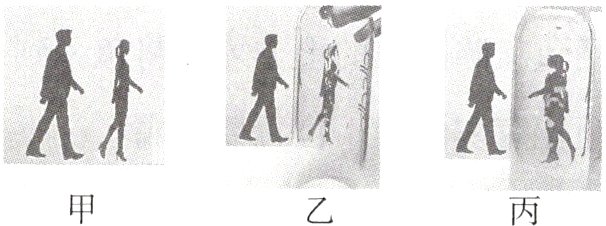 10. 创新实验 如图为一段物理创新实验视频的截图:图甲为原图,图乙为隔着空茶杯看此图片,图丙为隔着装满水的茶杯看此图片,茶杯到图片的距离相同。产生图丙情形是因为光发生_______(选填“反射”或“折射”)形成左右方向_______(选填“正立”或“倒立”)放大的像。若要使像缩小一些,应将茶杯适当_______(选填“靠近”或“远离”)此图片。