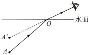 8. 如图所示,小华用激光笔照射家里的鱼缸,在墙面和鱼缸底部均发现了照射的光斑。请画出激光束AO在墙面和鱼缸底部形成光斑的光路图。