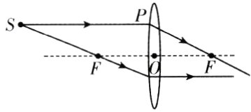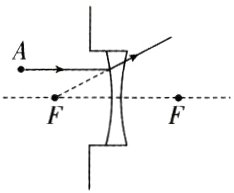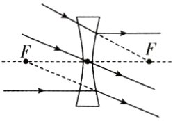 14. 如图,请作出凹透镜的入射光线及折射光线。