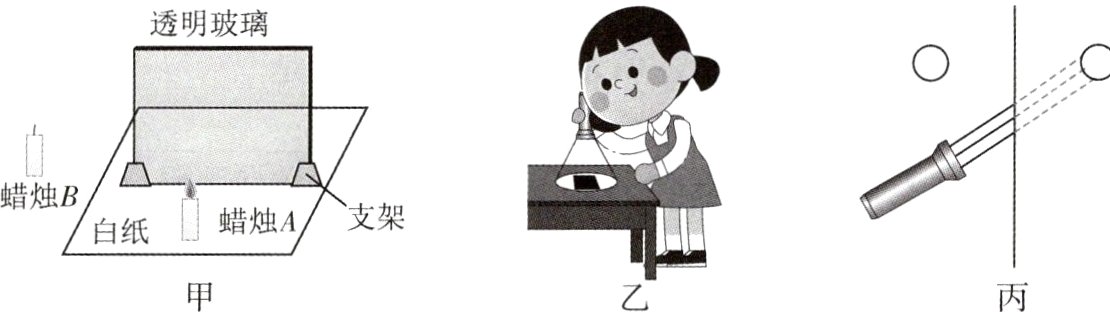 ②如图丙所示,小华用手电筒对着平面镜中某物体的像照射时,观察到像比原来亮多了,其原因是____________________。