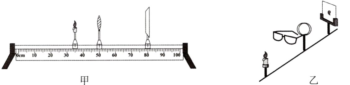 (3) 如图乙所示,在烛焰和凸透镜之间放一副眼镜,发现光屏上的像由清晰变模糊了,将光屏远离透镜适当距离后光屏上再次呈现清晰的像,则该眼镜是________(选填“近视”或“远视”)眼镜;