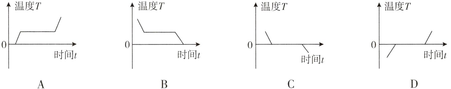 4. 小明将一杯温水放入冰箱的冰冻室里,经过一段时间后,杯中的水发生了物态变化。如图所示的四个图像中能正确反映这杯水的物态变化过程的是 ( )