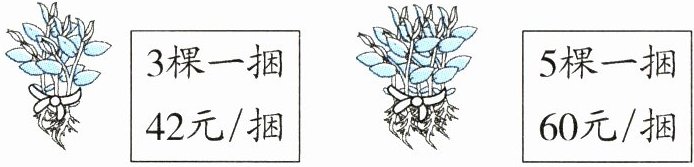4. 3月12日是植树节,幸福小学准备组织四年级的156名同学去植树,苗圃有下面两种规格的树苗(不单棵售卖)。如果每名同学种植一棵树苗,怎样购买最省钱?把你的想法写下来。(5分)